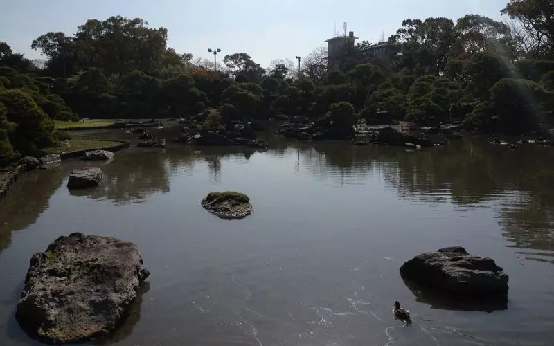 現在の「松濤園」は明治に整えられたもので、中心にある大きな池とたくさんの松の木が印象的☆冬には野鴨が訪れ羽を休めていることも♪