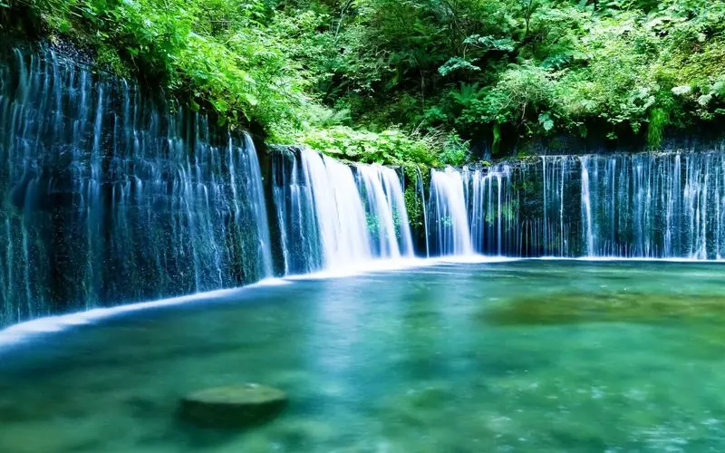 なんと軽井沢にも白糸の滝はあるんです!高さは3mとそこまで高くはありませんが、この滝の見所は何と言っても幅!幅70mに連なる滝は、自然が作り出したカーテンのよう。