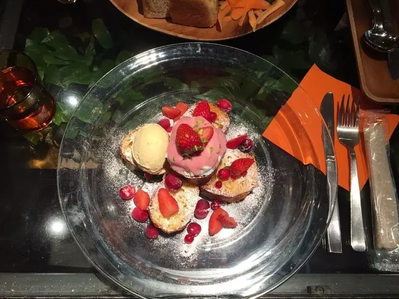 「バラの紅茶」は、たくさんのバラの花びらを入れた紅茶メニュー。デザートと一緒に食べても飽きない、ほんのりとした甘さ♪他にも、バラ、モーブ、オレンジ、ジャスミンといった様々な種類の花を入れた「イスパハン」も気になるメニュー。ぜひチャレンジしてみてください。