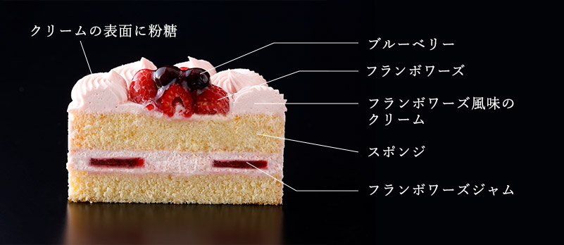 フランボワーズを使用したクリームは甘酸っぱさとミルク感があり、あっさりとしているのが特徴。スポンジはふわふわとした食感なので、くどすぎず軽く食べられます。