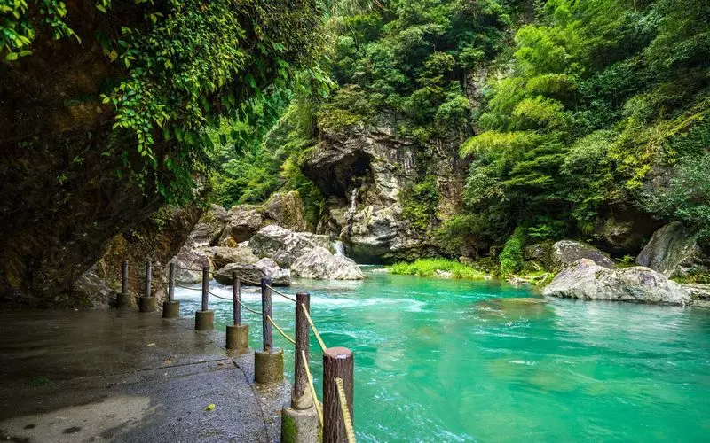 遊歩道のすぐ横に流れる川は鮮やかなターコイズブルーで、周りを覆う深緑の木々と生み出す景色はまるで絵画のよう♪