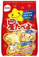 次にご紹介するおすすめのせんべいは商品名通り、星形が可愛いい栗山製菓の「星食べよ」。塩がふわふわとした星形の表面にしっかりとついて、子供にも馴染みやすい味です。