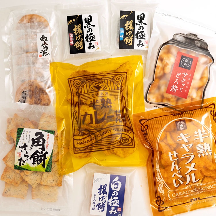 中には、ご紹介した「半熟カレーせん」が入ったセットやギフト用の詰め合わせなど、1度に数種類のせんべいが楽しめる商品もあるので、手土産にもぴったりです。