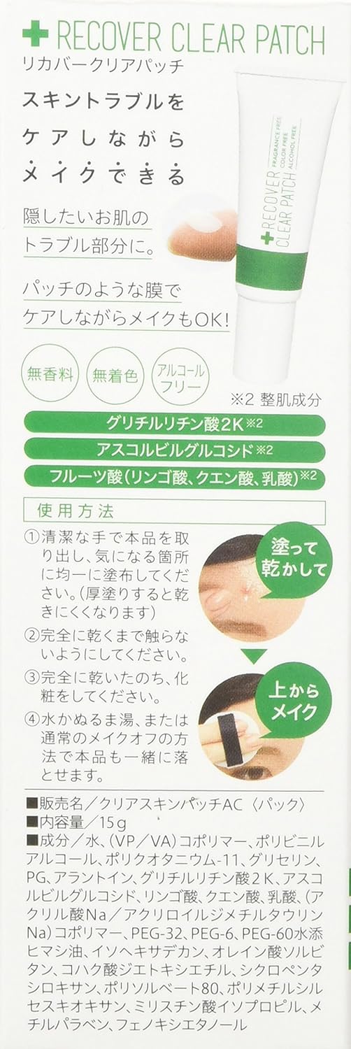 次にご紹介するおすすめのニキビパッチは、コジットの「リカバークリアパッチ」です。クリーム状のニキビパッチで、ニキビの上から塗ることで薄い膜ができ、その上からメイクも可能な商品。