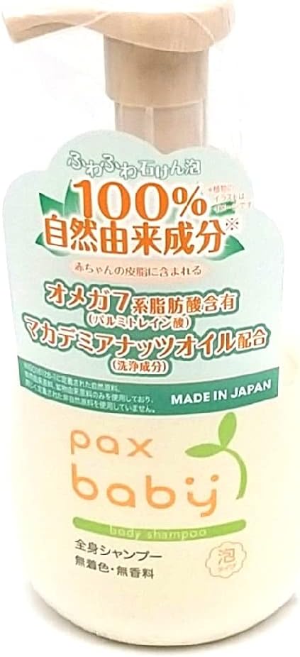パックスベビーの「全身シャンプー」は、無香料・無着色(※)の全身シャンプーです。片手でも使いやすい泡ポンプ式なので、赤ちゃんを抱っこしながらの入浴にもぴったり!