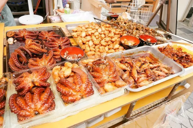 食べ歩きできるものから飲食店も豊富でデートでも楽しめます。明石の名物であるタコは、生ものから煮付けされているものまであり家に買って帰ってタコ飯にするのもおすすめですよ!