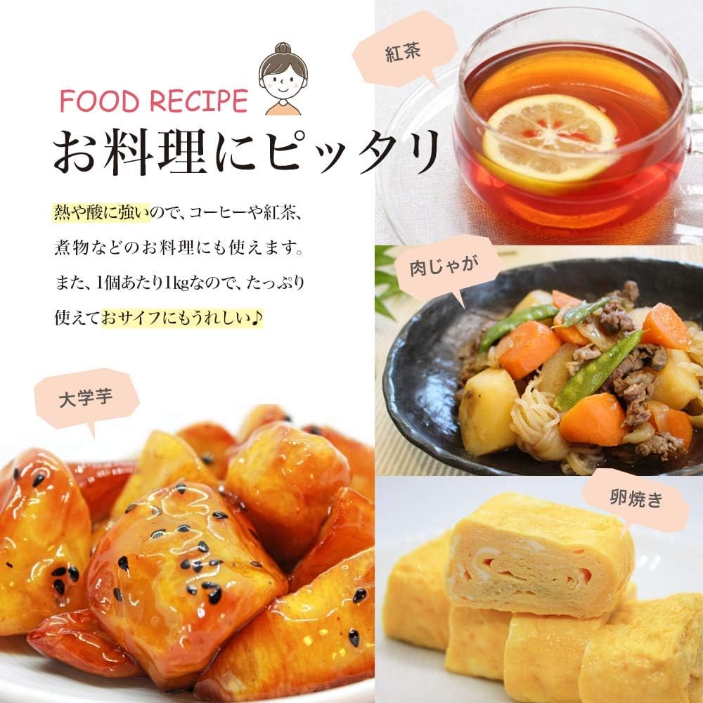 おすすめポイントは1000gの大容量ながら348円(税込)~購入できるコスパの高さ。液体タイプで飲み物にも溶けやすく大容量なので、人数の多い家庭の日常使いにおすすめの商品です。