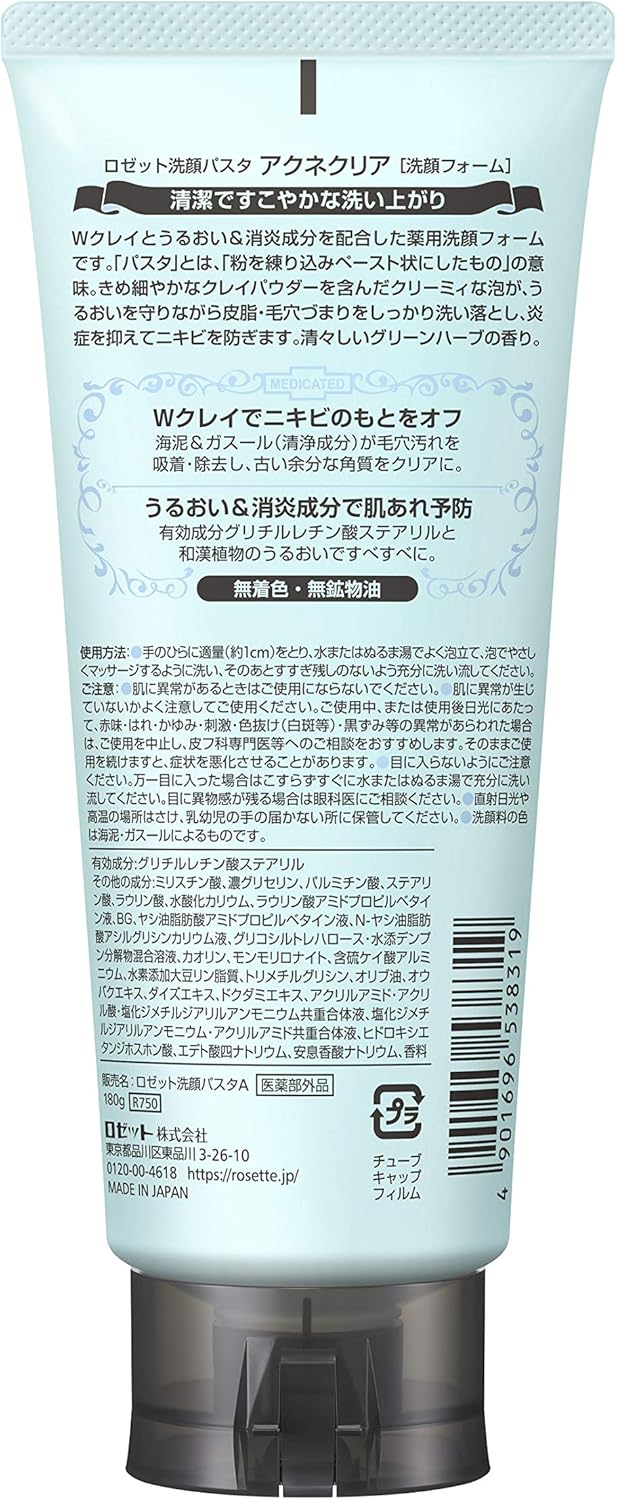 『ロゼット』の「洗顔パスタ アクネクリア」は、ニキビ予防の有効成分グリチルレチン酸ステアリル(※2)を配合した洗顔料。