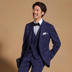スリーピーススーツはベストが付属していることにより、ジャケットのみのスーツより華やかな印象があるため、結婚式のようなお祝いの席のドレスアップにおすすめ。