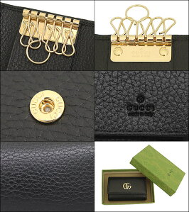 無地のレザーにゴールドのロゴがおしゃれな、シンプルかつコンパクトなデザイン。6連キーリングとカードポケットも付いており、耐久性のある牛革レザーの使い心地の良さも魅力。グッチ純正BOXも付いています。