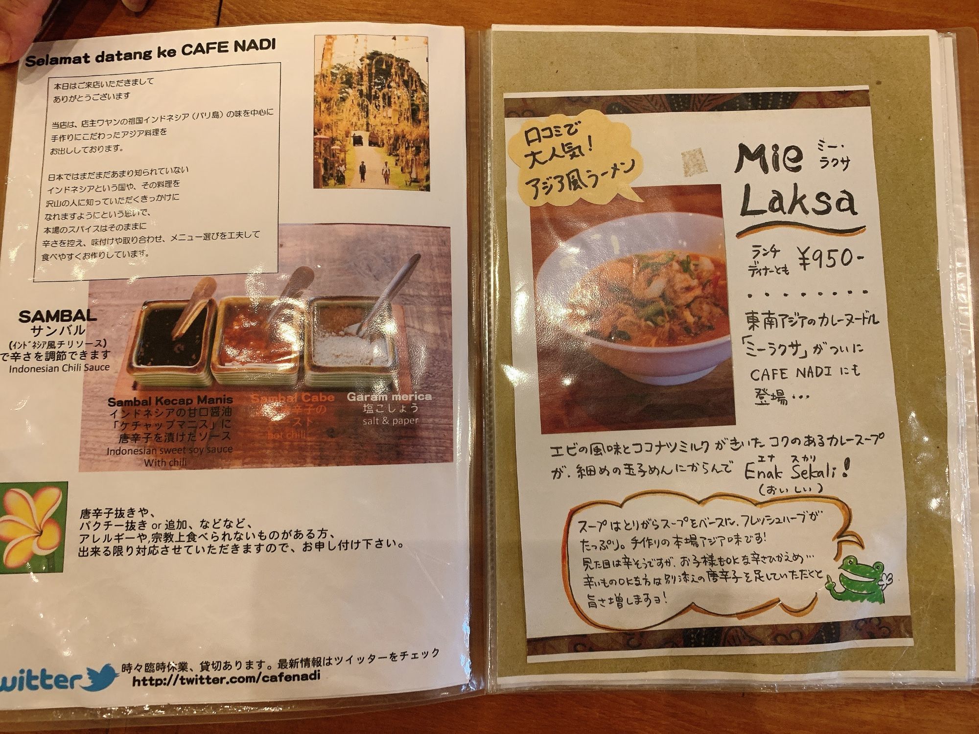 甲東園の駅に、バリ出身のご主人が作る、本格的なアジア料理が食べれる「カフェナディ」って言うお店があるねん