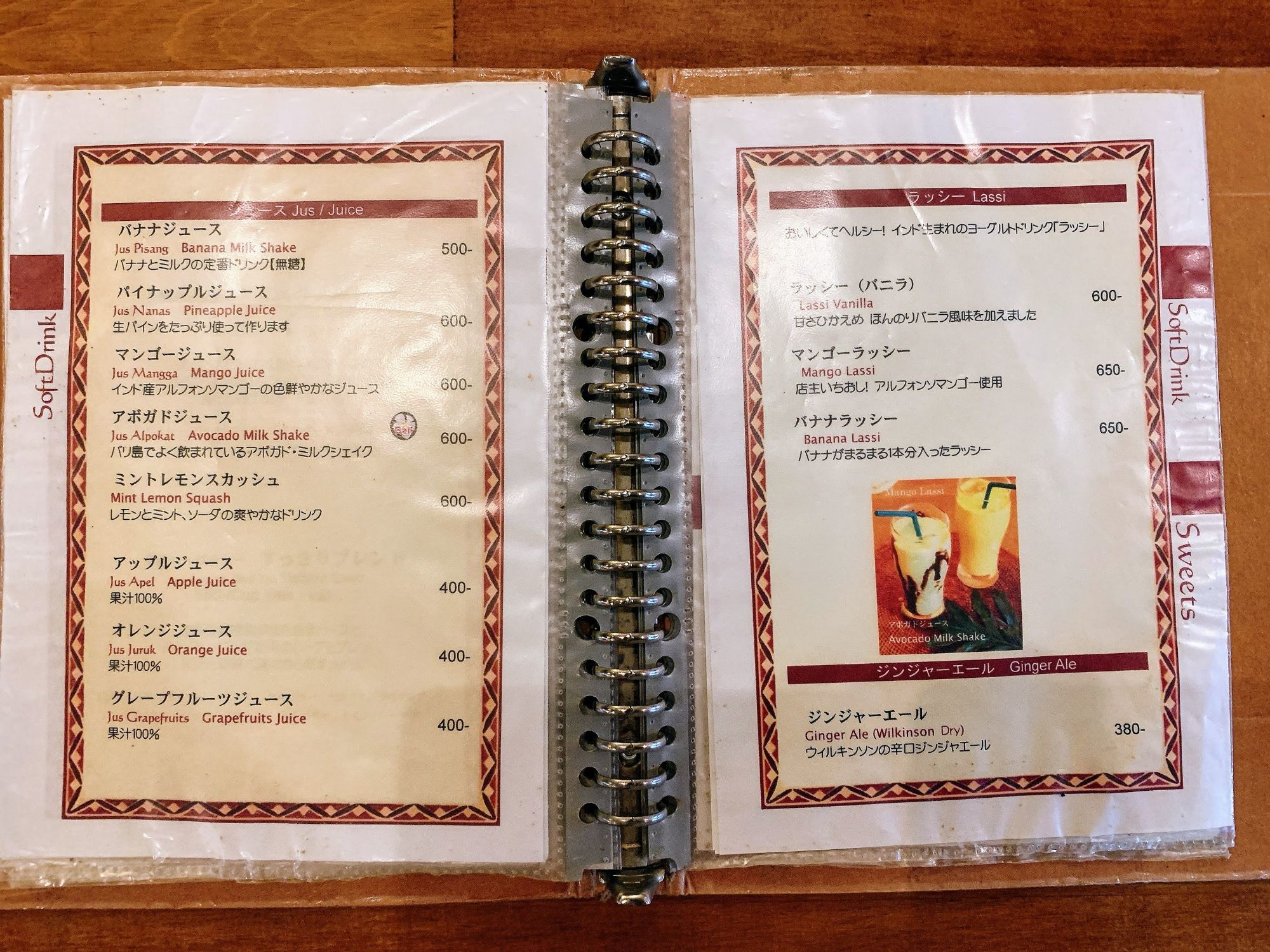 ドリンクとデザートのメニュー↓↓