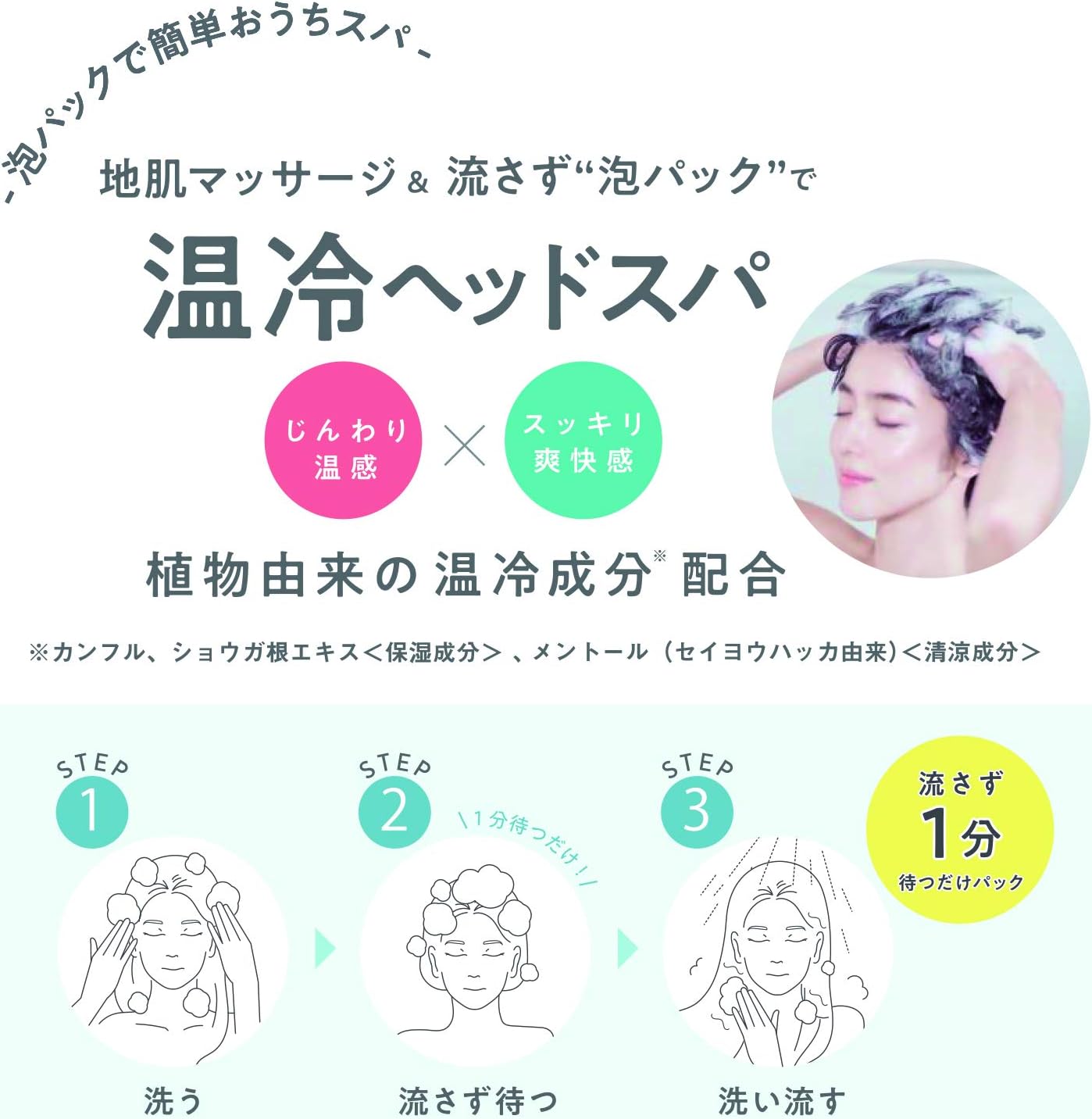 - 頭皮のベタつきやニオイを洗浄によって洗い流す