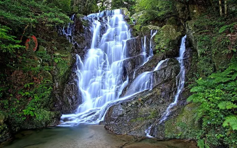 福岡県指定名勝にも選ばれ、周囲には樹齢300年以上と言われる3本のカエデ(福岡県指定天然記念物)が、滝とともに見事な景観を醸し出しています。(※"糸島市観光協会 公式HP"参照)