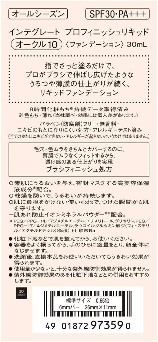 潤いの持続時間にこだわっており、付けたての仕上がりが約8時間続くのが嬉しいポイント。同じブランドから発売している「プロフィニッシュ ファンデーション」と一緒に使うのもおすすめです!(※"インテグレート 公式HP"参照)
