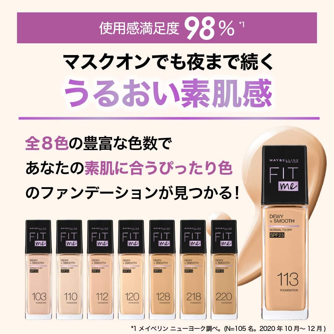 続いてご紹介する乾燥肌におすすめのファンデーションは、メイベリン「フィットミー リキッド ファンデーションD」。綺麗なツヤ肌に仕上げてくれる乾燥肌&混合肌向けのファンデーションです。