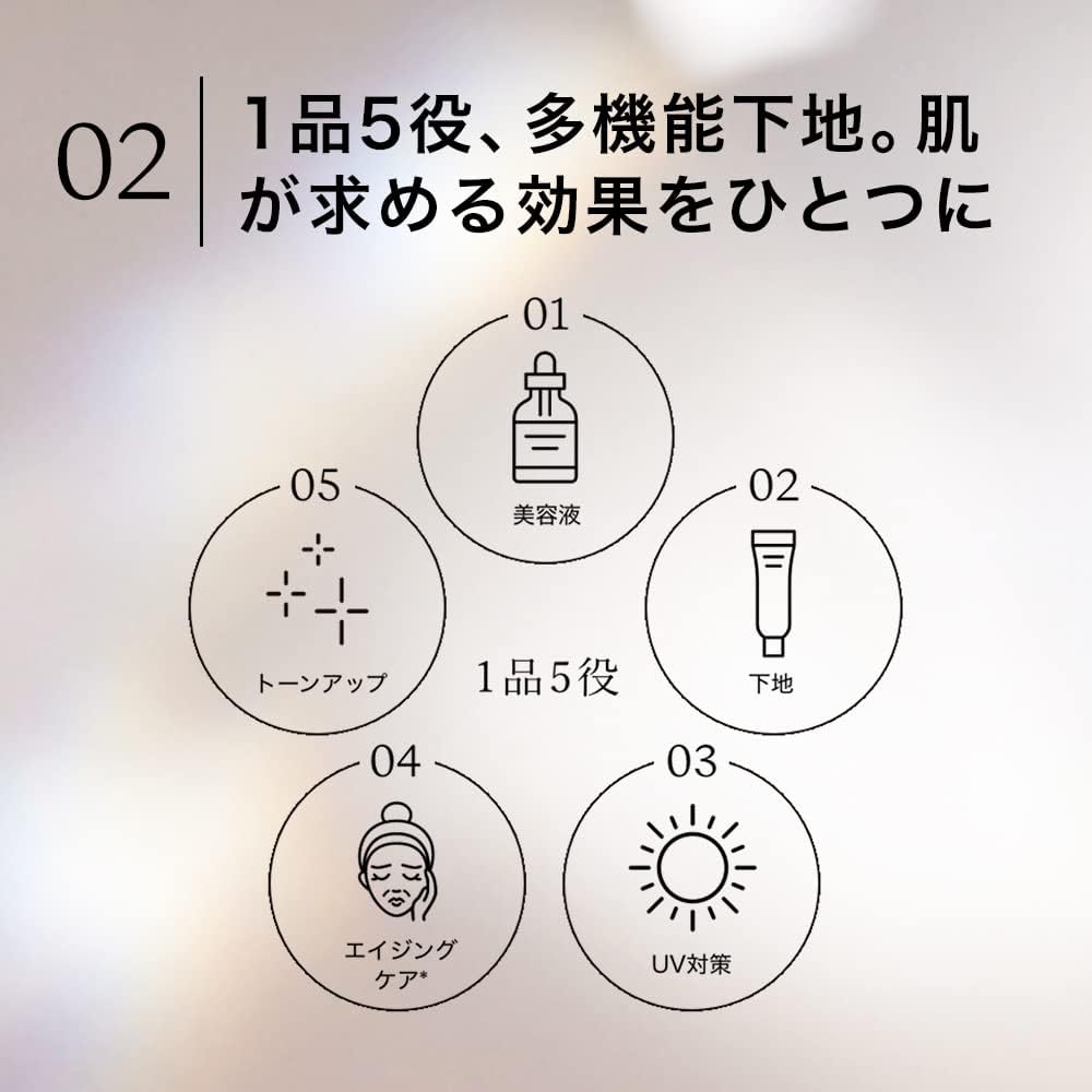 5種類の美容オイル(※)配合。微細パールによる効果でトーンアップできるのもうれしいポイント。顔色のよってポイントでカラーを使い分けるのもおすすめです。