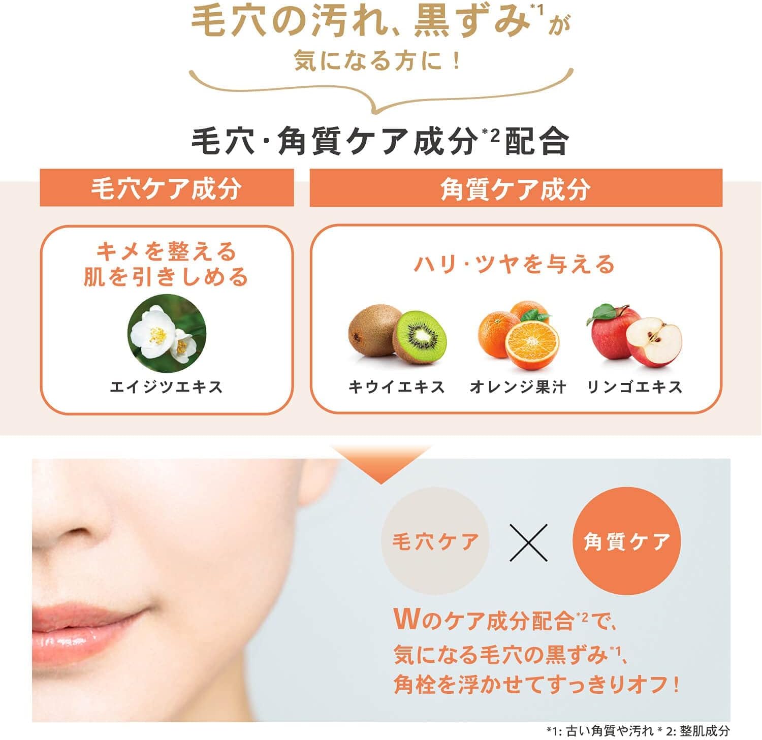 『肌の必須成分「セラミド」を守って洗い、肌荒れしにくい潤い肌に保ちます。落ちにくい口紅や毛穴の奥のファンデーション、日やけ止めをすっきりと落とします。』