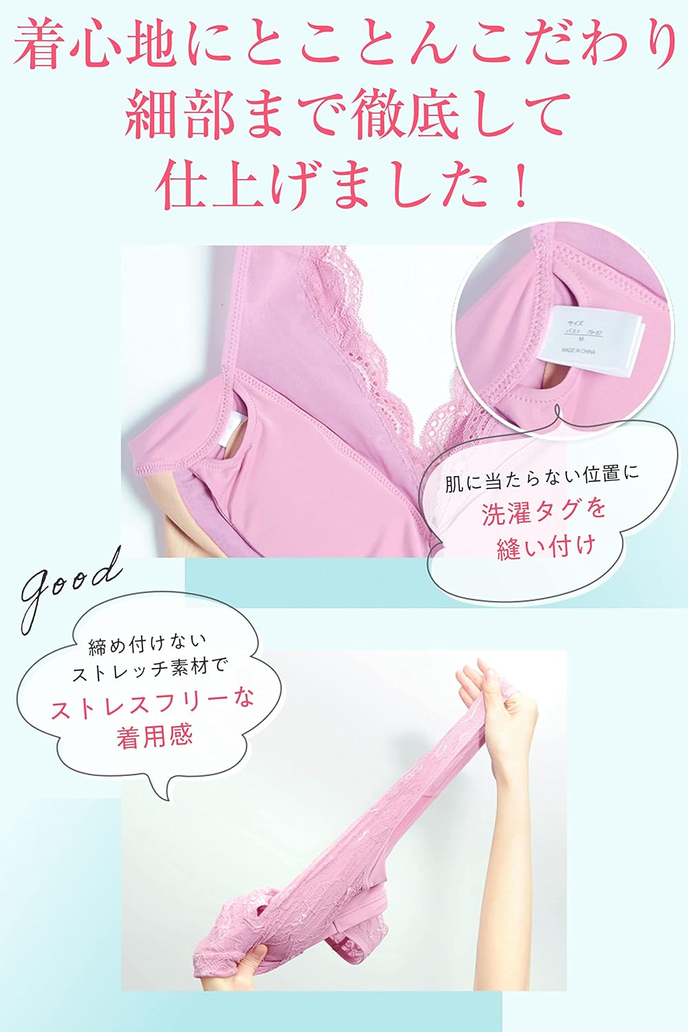 フリルやホックもないシンプルなデザインで、洗濯タグもナイトブラの生地に印刷してあるため、寝心地が良いのもうれしいポイント。初めてナイトブラに挑戦する方におすすめの商品です。