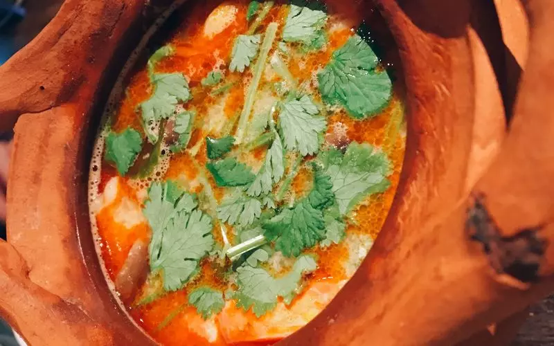 もちろん、カレー以外のメニューもとても充実しています◎まず始めに頂いたのは、タイグルメの代名詞「トムヤムクン」♪エビの出汁がたっぷりとココナッツの効いたスープに広がって、味わい深いうま味が体に染み渡ります…!ごろごろと入った野菜も、食べ応え抜群で◎