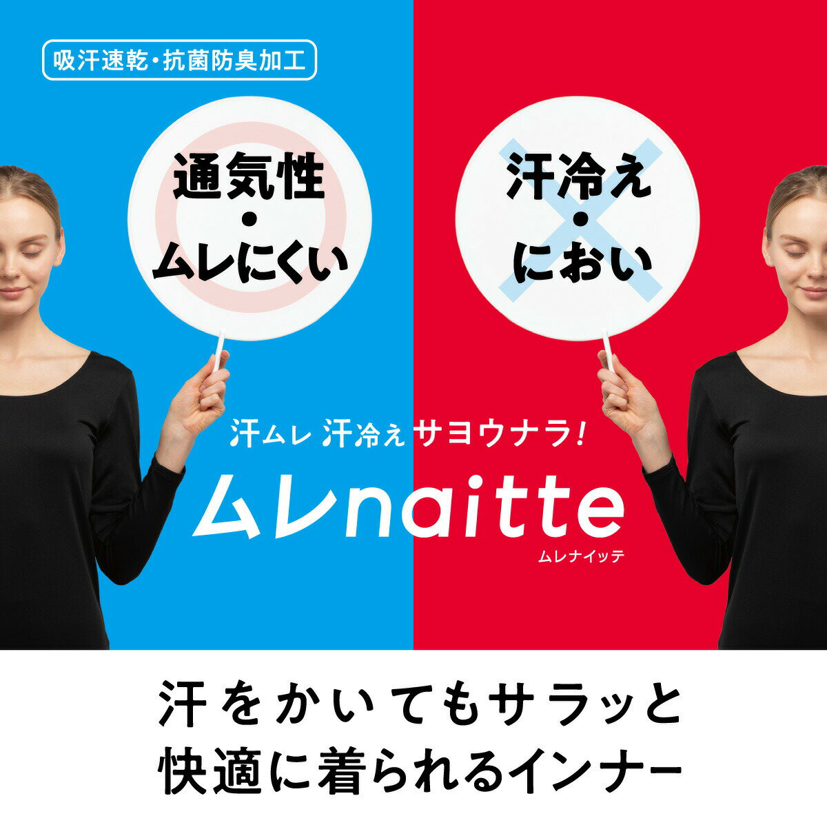 また、消臭テープを脇と襟に使用し、汗臭や加齢臭の原因菌(ノネナール、アンモニア、酢酸、イソ吉草酸)を抑制してくれます。スポーツをする方や汗による臭いが気になる方におすすめのレディースインナーです。