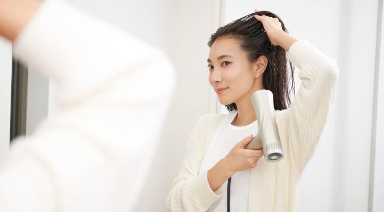 ドライヤーは約60℃の風で髪の根本から素早く乾かし、まとまりのある髪に仕上げてくれます。