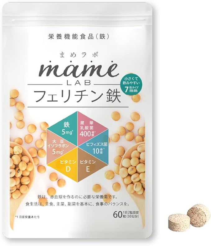 - 貯蔵鉄配合の鉄サプリ!たった2粒で手軽に効率よく鉄分補給「まめラボフェリチン鉄」【PR】