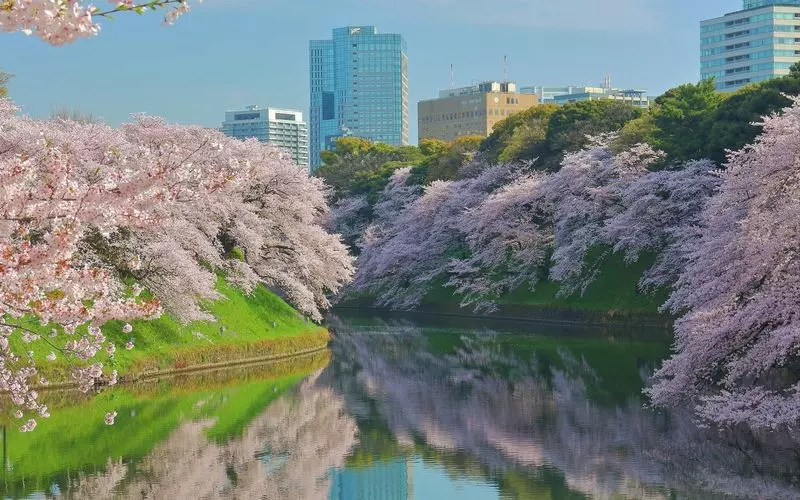 皇居の広いお堀の周りに咲く染井吉野(ソメイヨシノ)が印象的な、東京の桜名所である『千鳥ヶ淵緑道(ちどりがふちりょくどう)』。お堀の石垣と、咲き誇る桜のコントラストが美しいお花見スポットです!