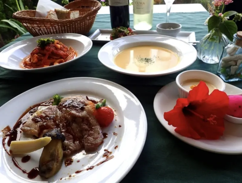 ホテルに併設されたレストラン『forest(フォレスト)』では、地元食材と手作りにこだわったシェフ自慢の料理が味わえます。使用される野菜の多くは、自家農園でスタッフが丹精込めて育てた無農薬野菜です。