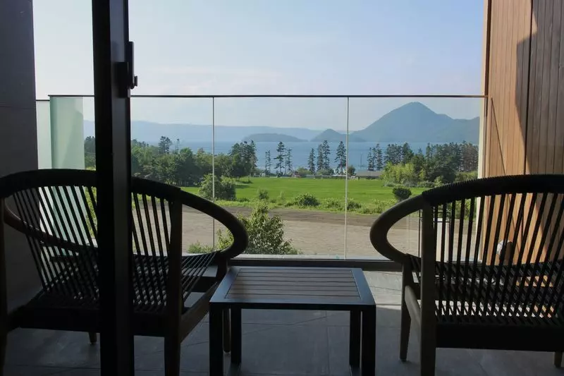 バルコニーと繋がるリビングルームでは、洞爺湖の美景を眺めながら読書を楽しめます。