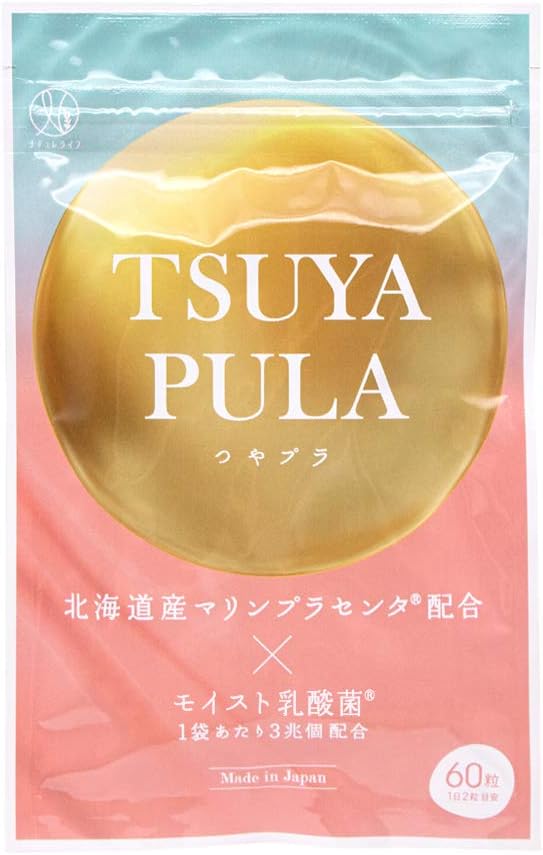 ナチュレライフの「つやプラ」は、コラーゲン、ヒアルロン酸、エラスチンの3大成分で構成された北海道産のマリンプラセンタ®をたっぷり配合した女性サプリ。さらに国産お米由来のモイスト乳酸菌®を配合しています。