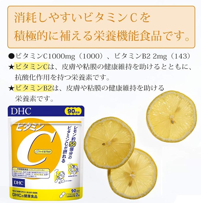 DHCの「ビタミンC ハードカプセル」はビタミンCとビタミンB2を豊富に摂取できる栄養機能食品です。30日分で270円(税込)と、かなりのお手頃価格で購入できるのが魅力!