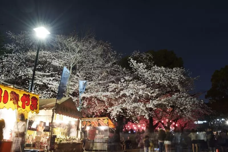 - ライトアップされた花見と一緒に屋台も楽しめる!