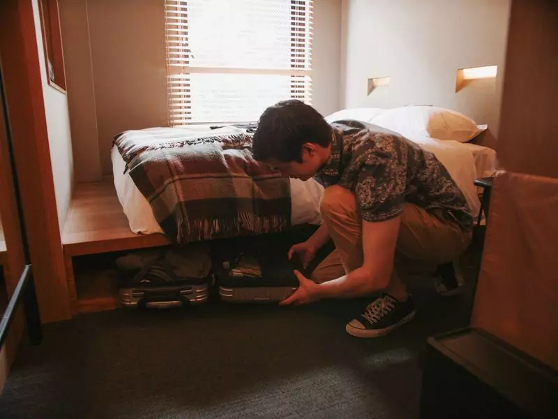 部屋にはベッドの下にスーツケースを開いたまま収納できるスペースが。