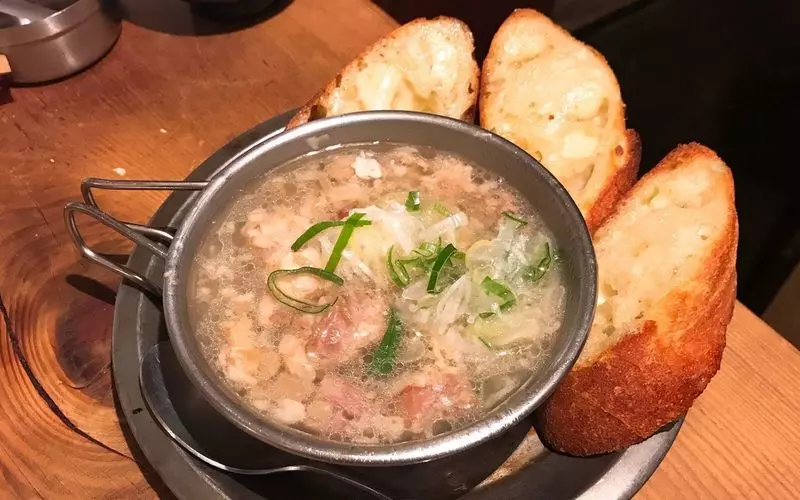 さらに「塩煮込み」を美味しくするのは、隣に添えられているバゲット♪バゲットの上に「塩煮込み」をたっぷり乗せて、卓上のオリーブオイルをかけると違った1面が顔を出します。ザクザクと歯応えの良いバゲット、柔らかいお肉、オリーブオイルの3つの組み合わせはここでしか食べることができません!