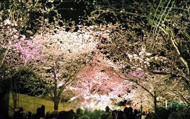 ライトアップされた桜を一目見ようとたくさんの観光客が訪れます。