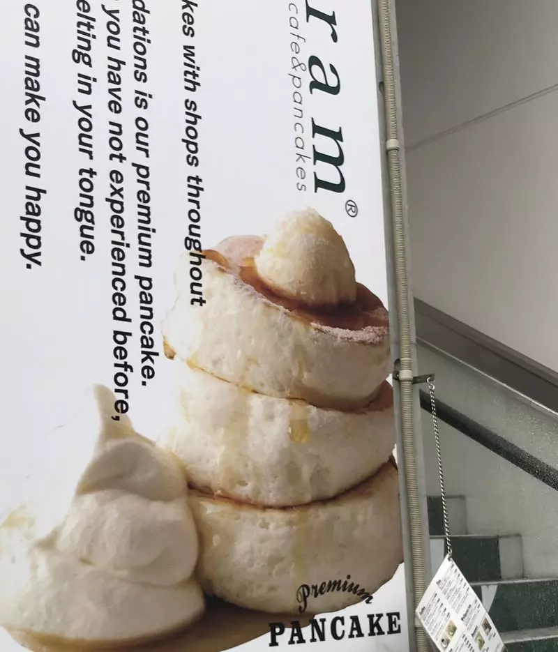 お店一押しのプレミアムパンケーキは、お店の前の看板にも堂々とデザインされています♪