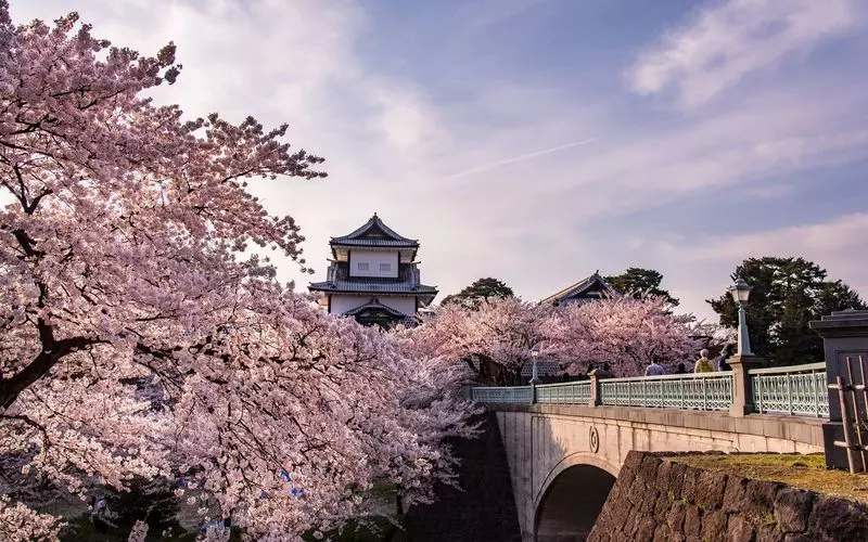 青空と白い金沢城、ピンクの桜はとにかく美しい!息を飲むほどの絶景に心打たれること間違いなし♡