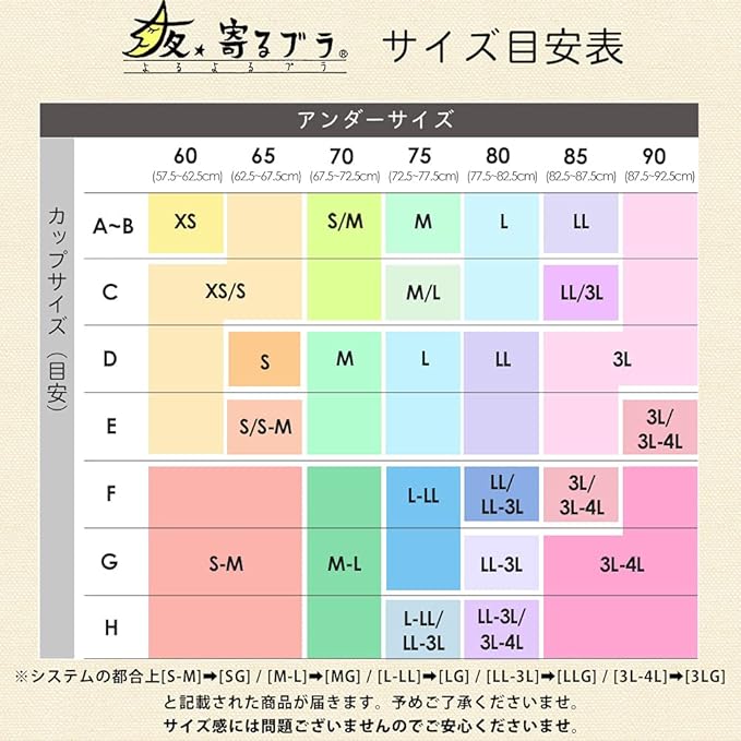『Cinderella(シンデレラ)』の「マシュマロリッチナイトブラ」は、Bカップのアンダー65~80までカバーしています。