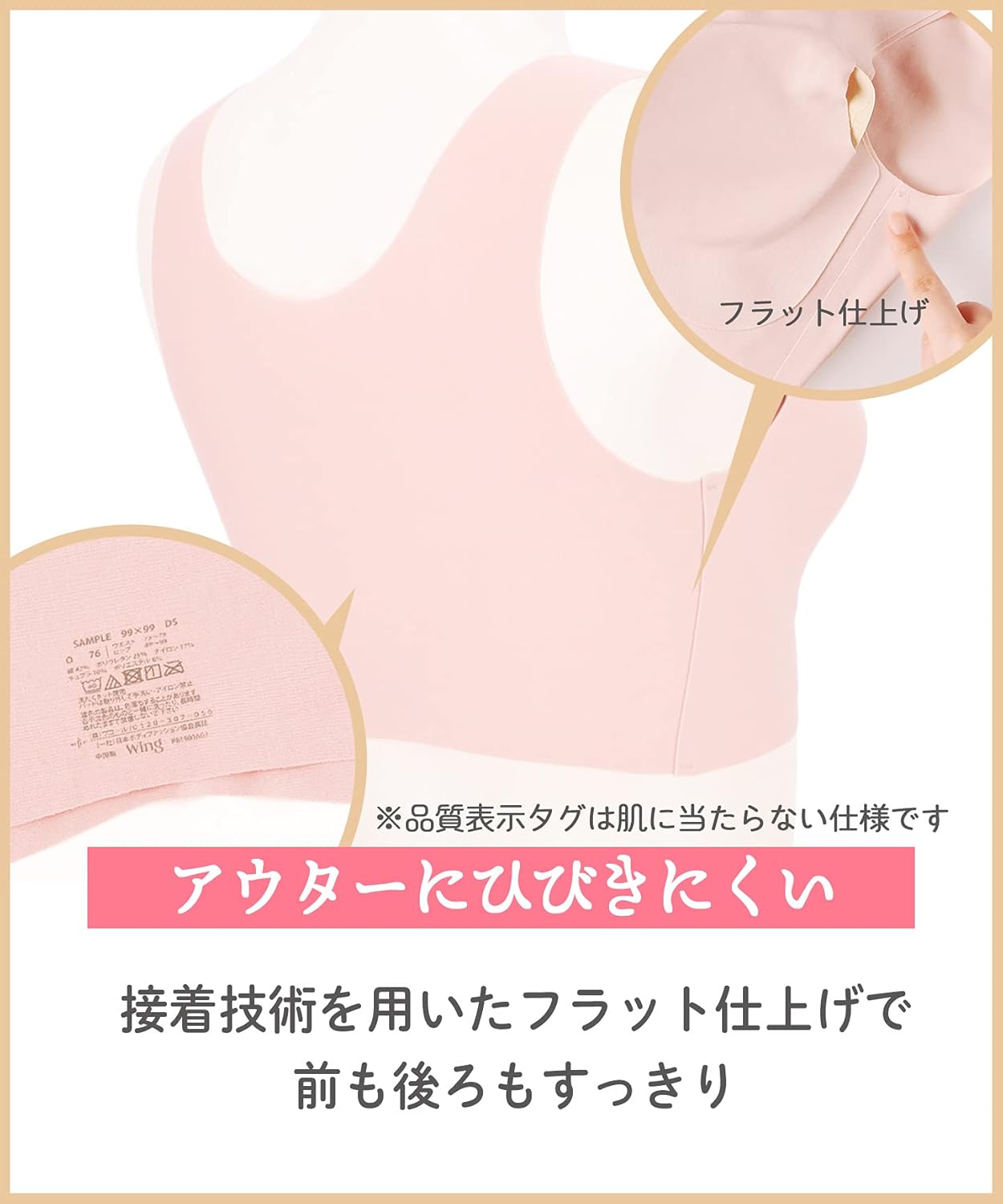 『Wacoal(ワコール)』の「ウイング ノンワイヤーブラ」は、ホックやレースといった装飾のないシンプルなデザインのナイトブラ。
