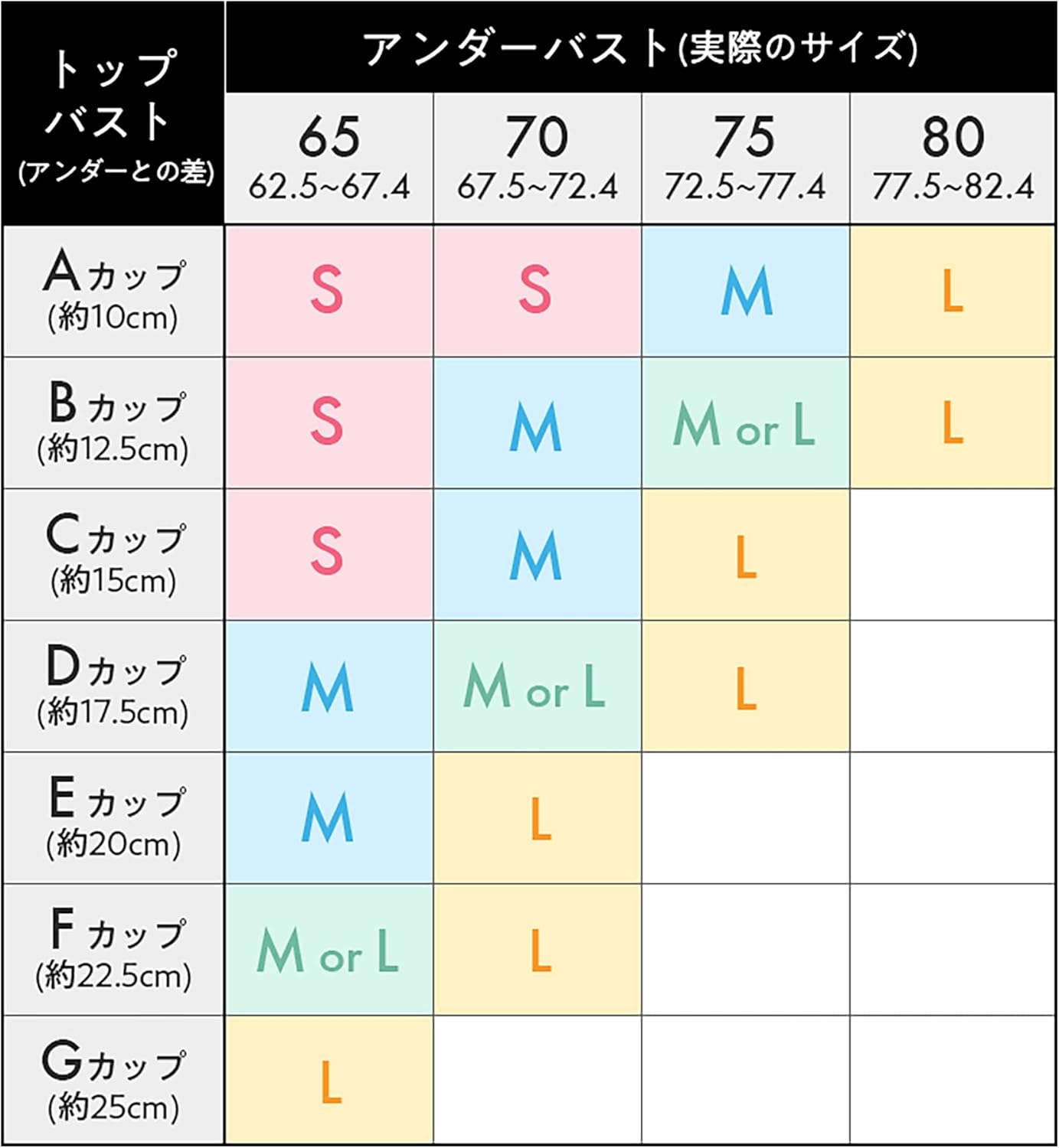 | サイズ | S/M/L/LL S:アンダー約60~65cm M:アンダー約65~70cm L:アンダー約70~75cm LL:アンダー約75~80cm |