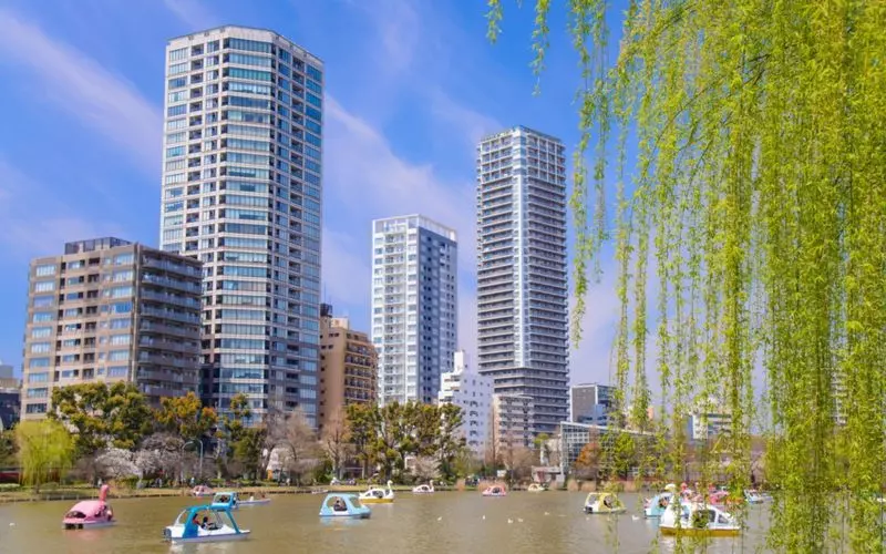 不忍池は、JR上野駅から徒歩約5分で、京成線の上野駅と繋がっている上野公園の南にあります◎約2kmの外周と約11万平方メートルにも及ぶとっても大きな天然池なんです!
