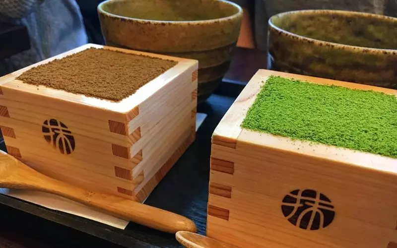 京都で名高いスイーツ店をご紹介♡それがこちらの「抹茶館」。ヒノキの升(ます)に入ったティラミスが有名なんですよ。