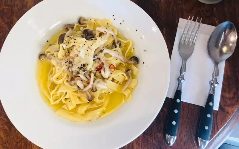 ランチには「パスタランチ」や「ごはんものランチ」さらにスイーツをプラスできるセットもご用意。特に「パスタランチ」は選ぶパスタによって、値段が変化します。写真は「パスタランチ」の「しめじのペペロンチーノ パルミジャーノチーズ風味」!このパスタ、ペペロンチーノなのにとてもあっさりとしていて、食べやすいんです…!女性の方でもペロリですよ♪