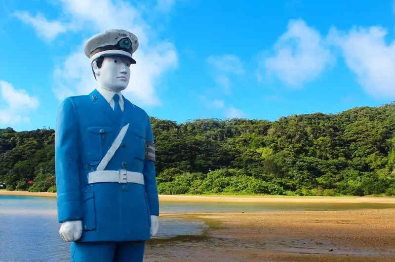 於斉のガジュマルから海沿いに車で2分ほど進んだ場所にいる伊子茂まもる君。