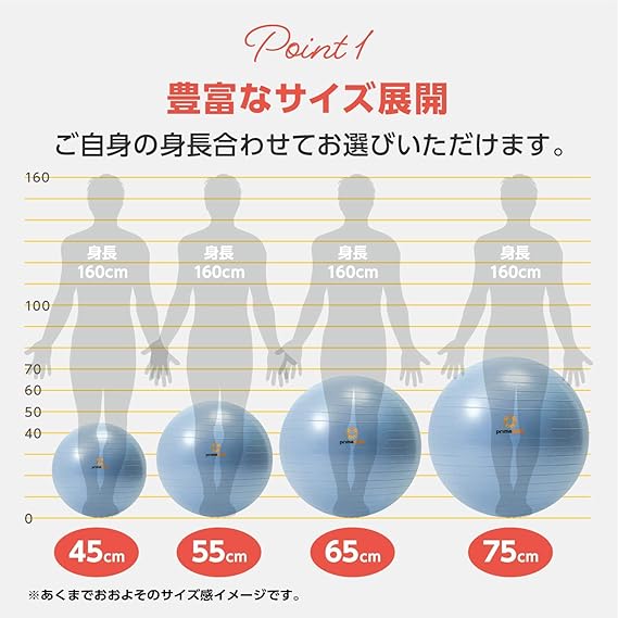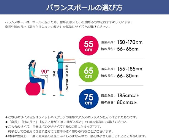バランスボールを購入する際は、自分の身長に合ったサイズ(直径)を選ぶといいでしょう。