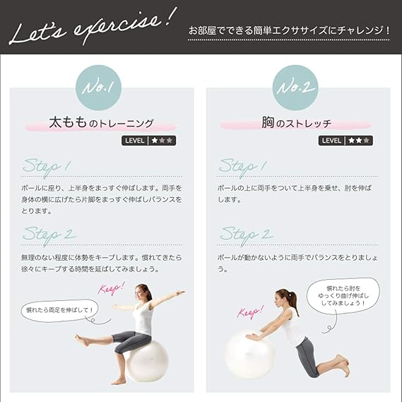 椅子代わりにバランスボールに座ってエクササイズができるため、日常にエクササイズを取り入れたい方におすすめです!