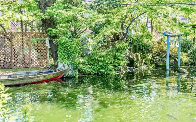 境内には小舟の浮かぶ池が♡錦鯉がたくさん泳いでおり、見ているだけで癒されるスポットです。