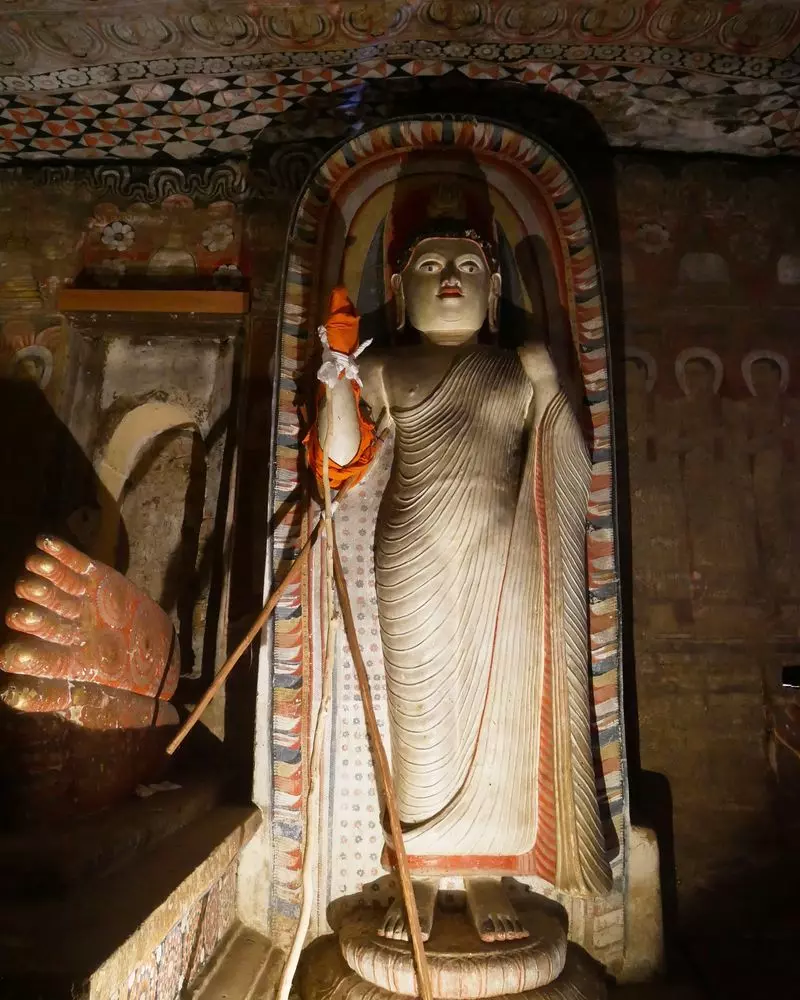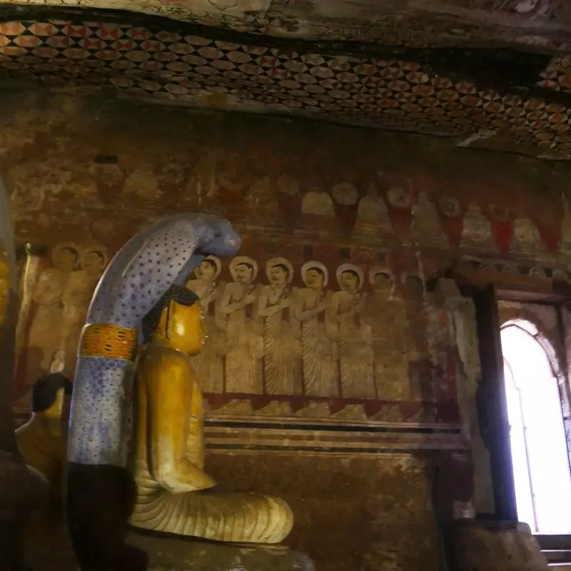 こちらは第2窟。ダンブッラ最大の洞窟で、仏陀の生涯やスリランカの歴史が壁画として一面に残されていて、まさに圧巻!