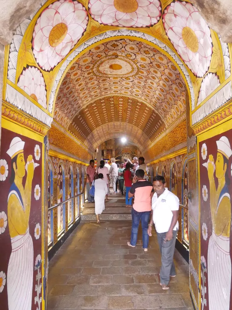 本堂の手前に色合いがかわいらしいトンネルがあります。こちらはキャンディの有名なお祭りの様子を描いているそうです。